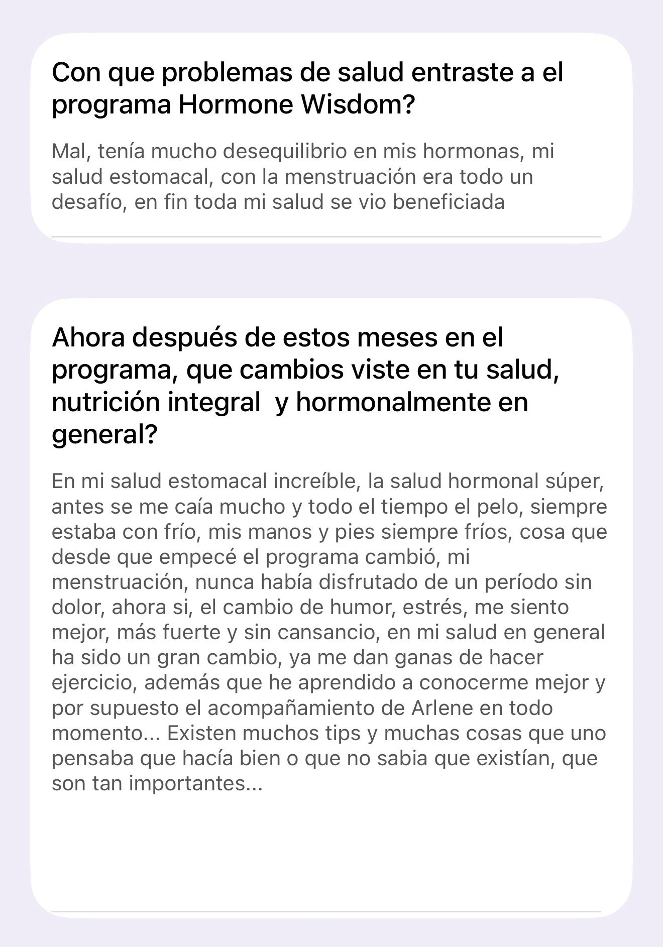 “ Hoy me siento con más consciencia, más conexión con mi cuerpo y con herramientas reales para cuidarme a largo plazo.